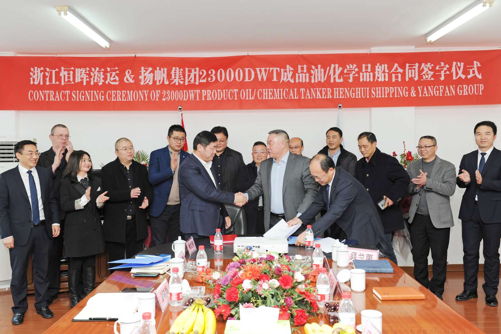 2020年1月1日,揚帆集團與國內(nèi)一船東簽署了一艘23,000噸級成品油兼化學品船建造合同。該船型總長159.20米,型寬24.80米,型深13.85米,結(jié)構(gòu)吃水9.80米,最大23,000載重噸,液貨艙艙容達27,000立方米。該船可裝載輕汽油、柴油、2類化學品等貨品。該項目的簽署為揚帆2020年的市場開拓注入了信心。